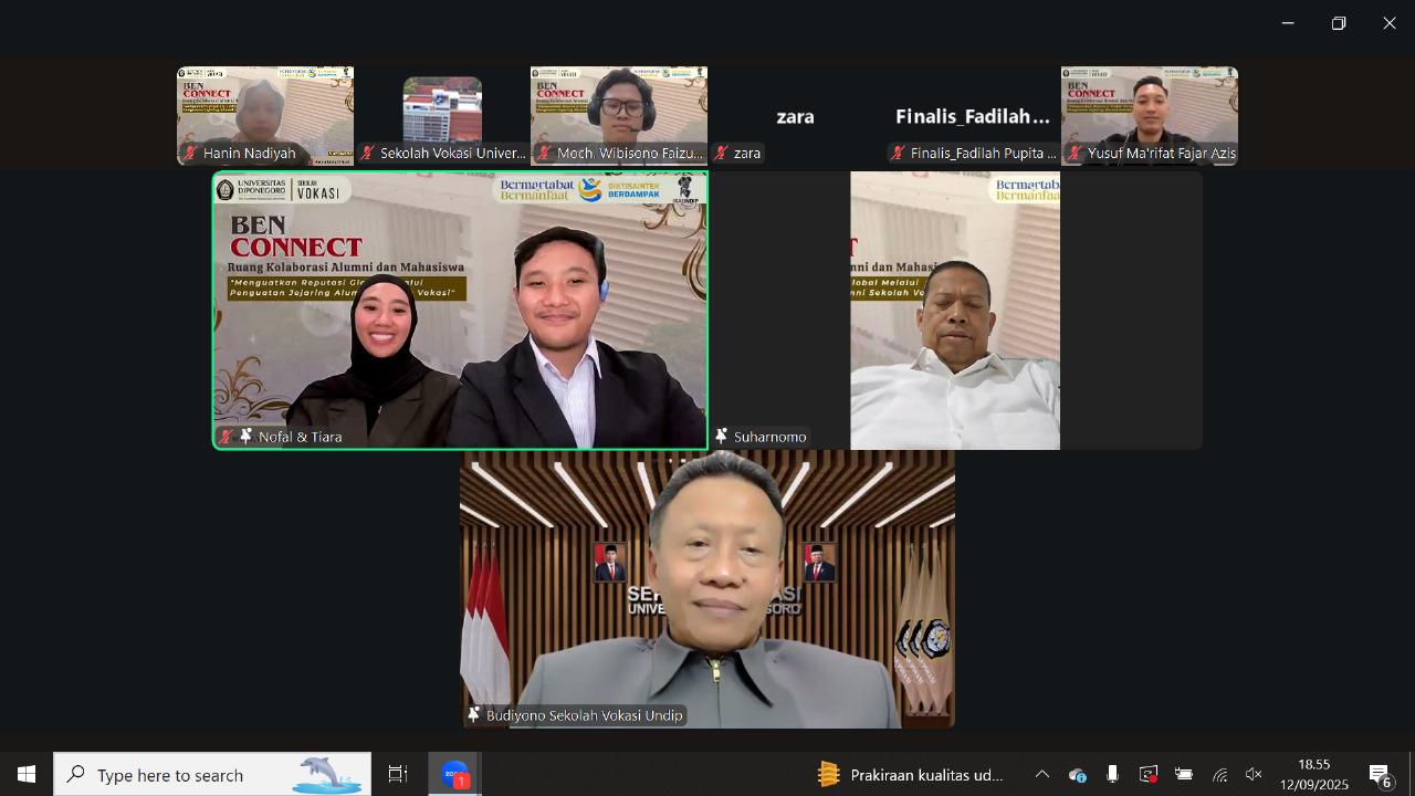 Semarang, 13 September 2025 – Sekolah Vokasi Universitas Diponegoro (Undip) menyelenggarakan BEN CONNECT, Ruang Kolaborasi Alumni dan Mahasiswa untuk Penguatan Jejaring Global, secara daring melalui